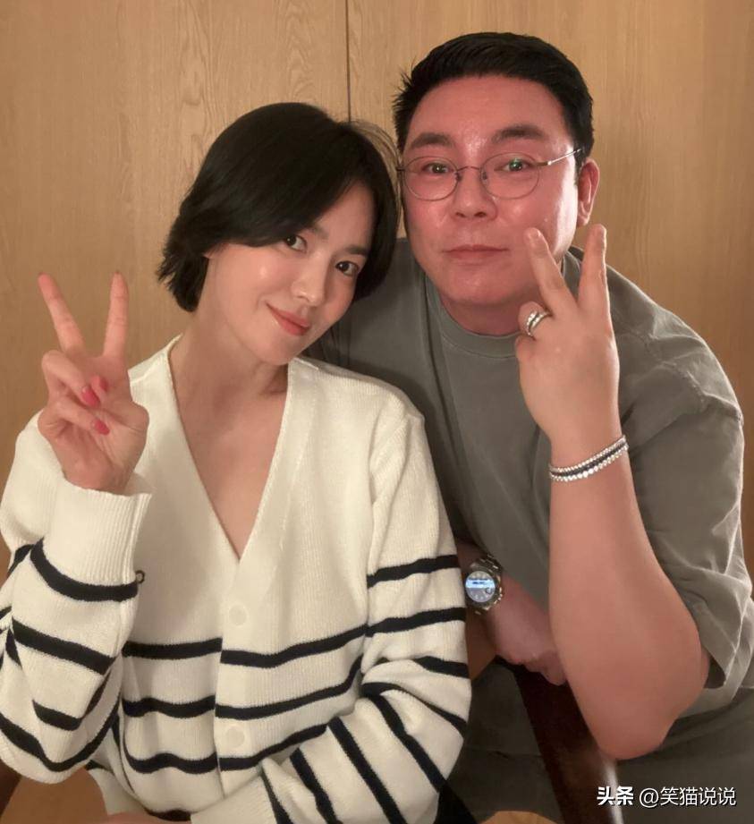 照片中,宋慧乔端坐在椅子上,好友则俯身站在她身后,两人面对镜头比耶,笑容灿烂、轻松自在。粉丝们注意到,相比之前,她的头发似乎又稍稍长了一些,显得更有生气与灵动感。画面里流露出的亲密与温暖,让人忍不住感受到那份朋友间的默契与真挚。