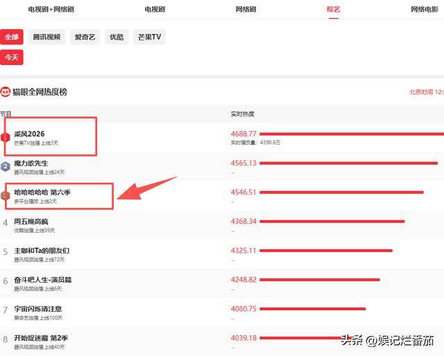 《五哈6》开播了,热度直飙第三名,第一则是今年以“直播”为看点的《浪姐7》。