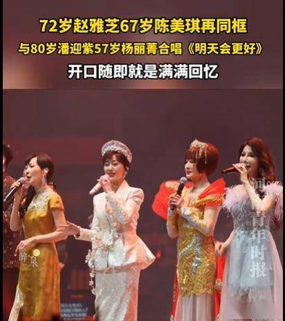 2026年4月4日的成都之夜,凤凰山体育公园内流淌着一种超越时空的温情。当72岁的赵雅芝、67岁的陈美琪、80岁的潘迎紫和57岁的杨丽菁携手走上舞台,共同唱起那首熟悉的《明天会更好》时,全场观众仿佛被瞬间拉回了各自的青春岁月。这一刻,不仅是四位影视女神的同框,更是一代人集体记忆的盛大重逢。