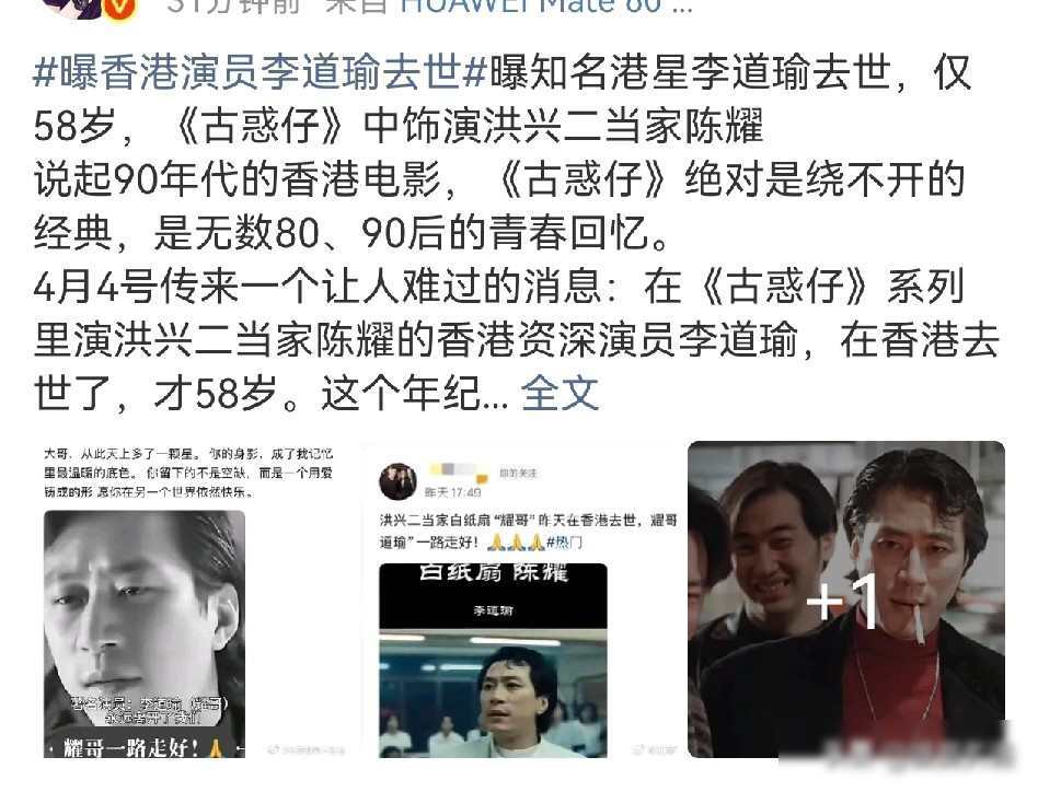 4月4号,李道瑜在香港去世,享年58岁,这个消息在第二天中午传开,港媒和圈里人陆续确认了情况,但没有提到具体原因,家里人处理得比较低调,没有公开追悼活动,也没有发布通稿,他最后一部