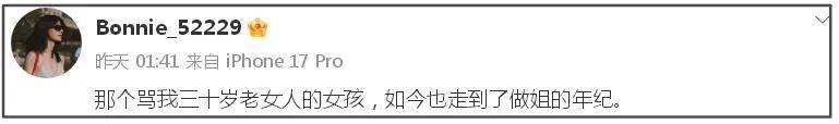 当“张艺上 黄景瑜”话题上热搜后,王雨馨随即发文写道“那个骂我三十岁老女人的女孩,如今也走到了做姐的年纪”,评论区的网友们秒懂,纷纷感叹只要做过必留痕迹,有些事情不会随着时间流逝被遗忘。而张艺上今年也的确刚满30岁,不知如何看待当年“老女人”的嘲讽。