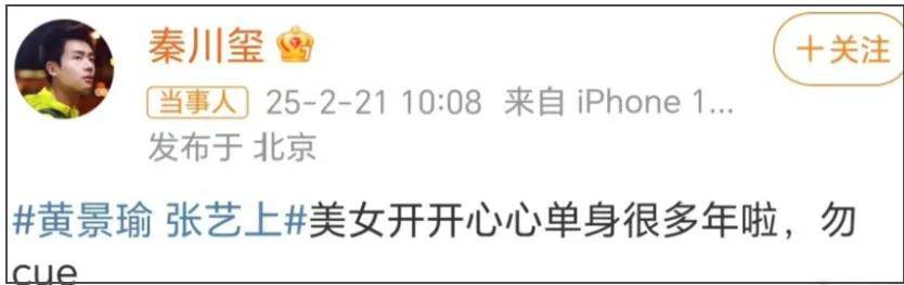 在张艺上参加《乘风2026》后,黄景瑜、王雨馨、张艺上三人的感情纠葛又被重新翻出,张艺上再次陷入小三争议,而黄景瑜的前妻王雨馨疑似又倒油嘲讽了!