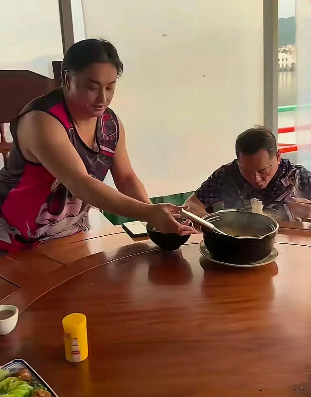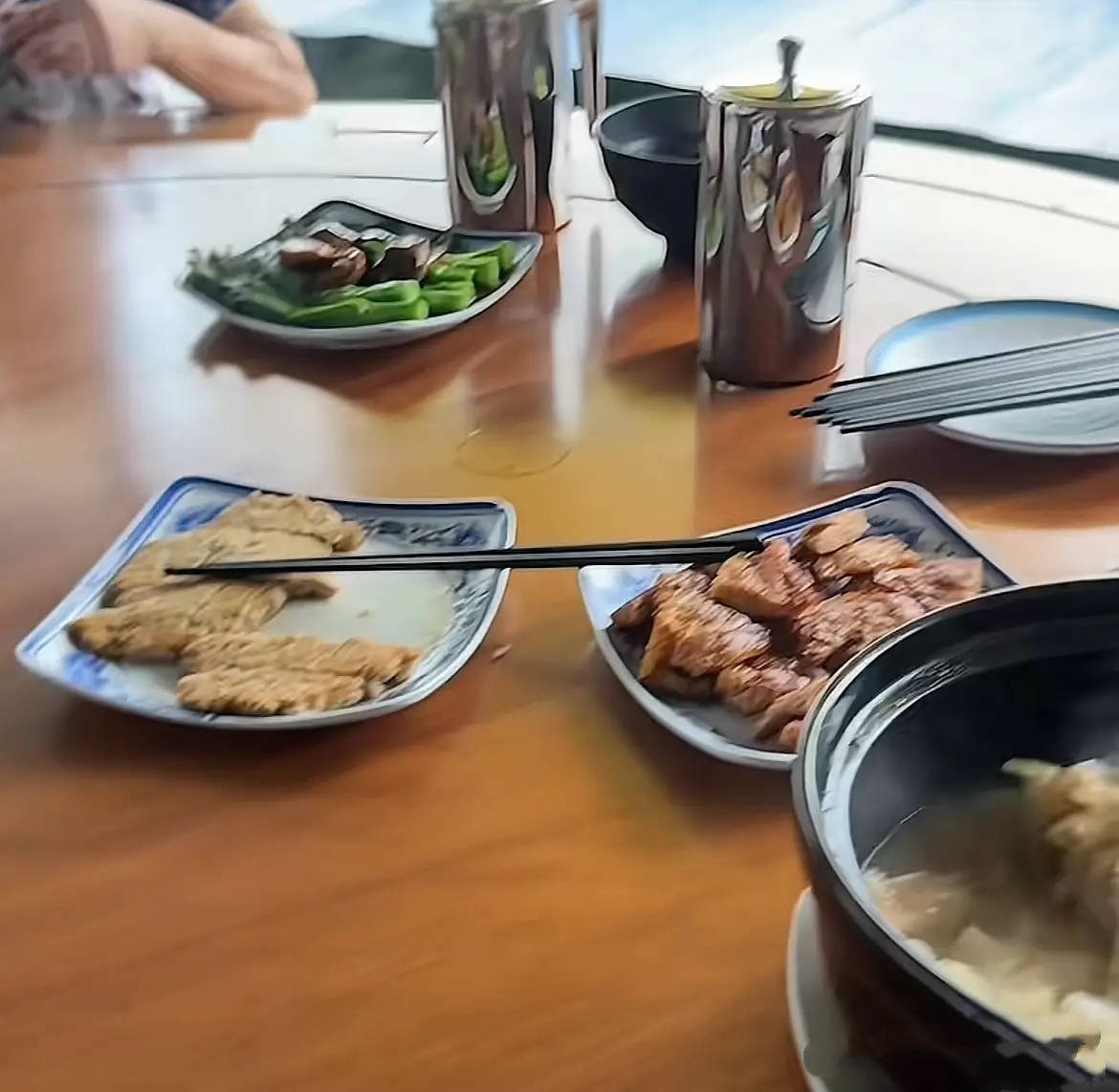 吃饭的位置还是不错的,有一个大大的圆桌,他们没有点太多菜品。就是一个大砂锅盛着汤面、然后有几个小碟子里面放着小菜,对他们来说这样的餐品格外简单。