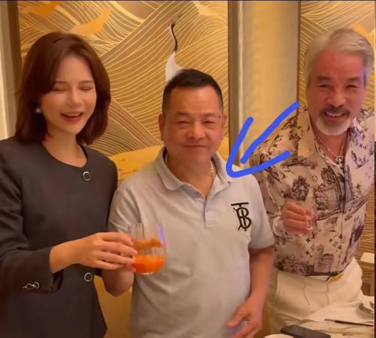 合影的时候,崩牙驹也是站在C位。他脖子里戴着大金链子、一身名牌穿搭,排场很高级。从身边作陪的人来看,地位就不容小觑。