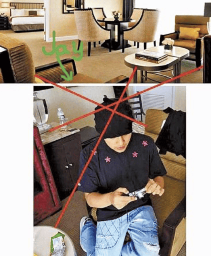 没想到却很快就被眼尖的网友发现,照片中的房间陈设与周杰伦在美国下榻的酒店房间一模一样,从窗帘、沙发到台灯等细节都惊人一致。