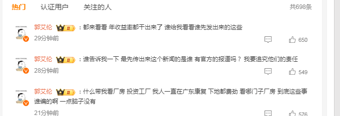 在评论区补充说明:自己"一直在广东康复,下地都费劲",根本不存在"看厂房、投资工厂"的行为,质疑编造细节者"一点脑子没有"。