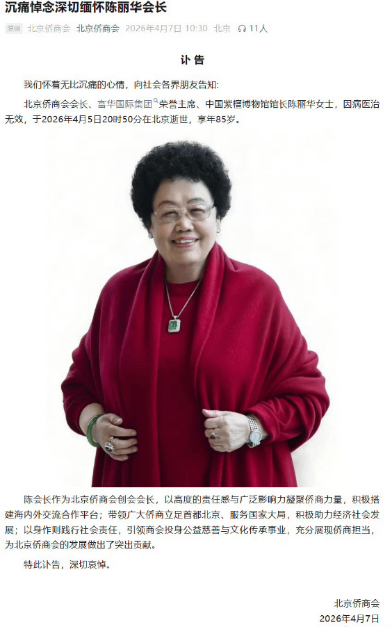 4月5日,富华国际集团荣誉主席、中国紫檀博物馆馆长陈丽华女士,因病医治无效在北京逝世,享年85岁。她也是《西游记》“唐僧”迟重瑞的夫人,令人惋惜!
