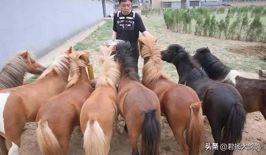 据说最早的时候,于谦从荷兰空运了17匹设特兰矮马,这种马头宽而小,耳朵也小,浑身毛茸茸的,特别可爱,成年肩高也就一米左右,特别适合小朋友骑。