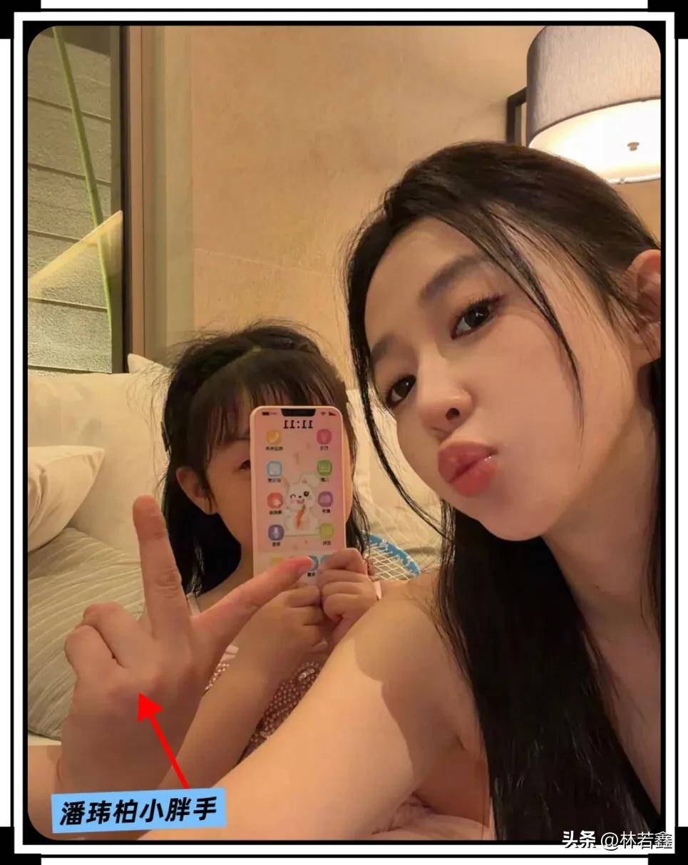 宣云皮肤白皙,少女感十足,真的是年轻又漂亮,潘玮柏女儿梳着齐刘海,手机挡着脸,依旧可以看出,乖巧可爱,潘玮柏没出镜,不过伸出一只手对着镜头比耶,这也算是一家三口合影,粉丝看到那小胖手,一眼就认出是潘玮柏的手!