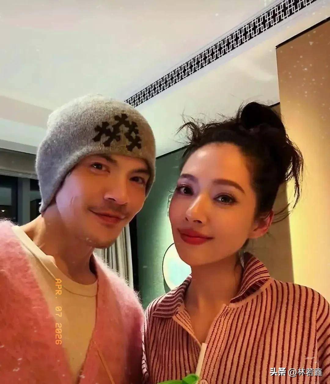 向佐跟郭碧婷穿着同款牛仔裤,小白鞋,两个人看起来像热恋中的情侣很甜蜜!