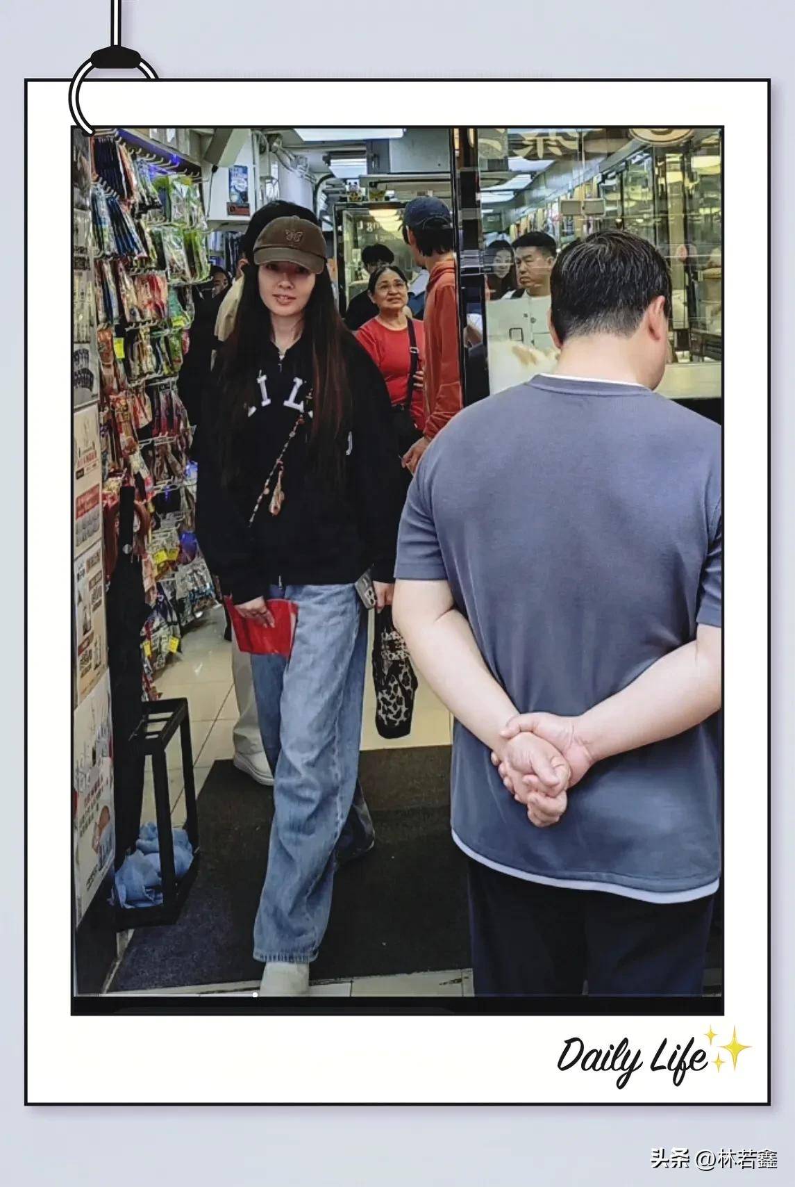 向华强也在, 77岁的向华强头发乌黑浓密,穿着白色休闲裤,整个人看起来年轻又时尚,体态轻盈,一点不像77岁的人!一家三口悠闲的逛着,十分接地气!