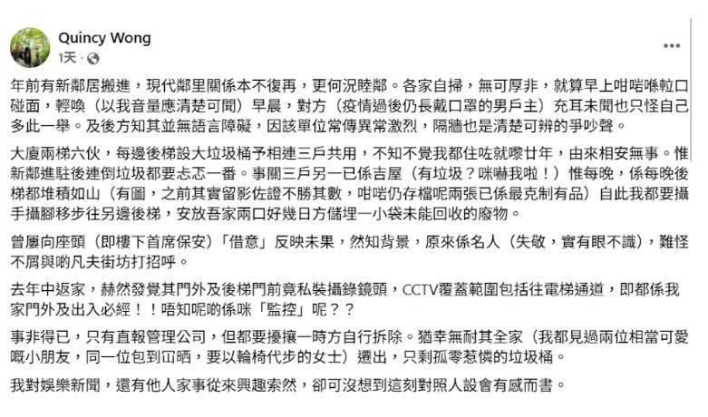 曾与李泳汉为邻的前康宏环球董事会主席王利民(Quincy),5日发表长文,揭露李泳汉一家暂住期间的种种行为,反讽他指责别人“监控”的言论与实际行为不符。