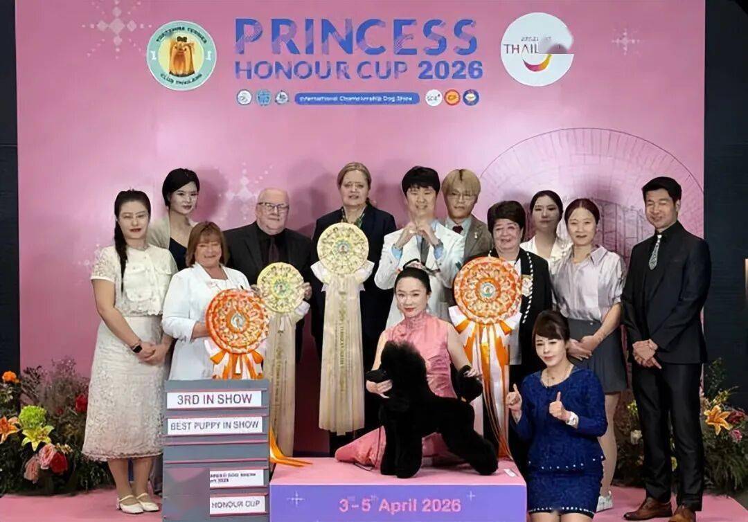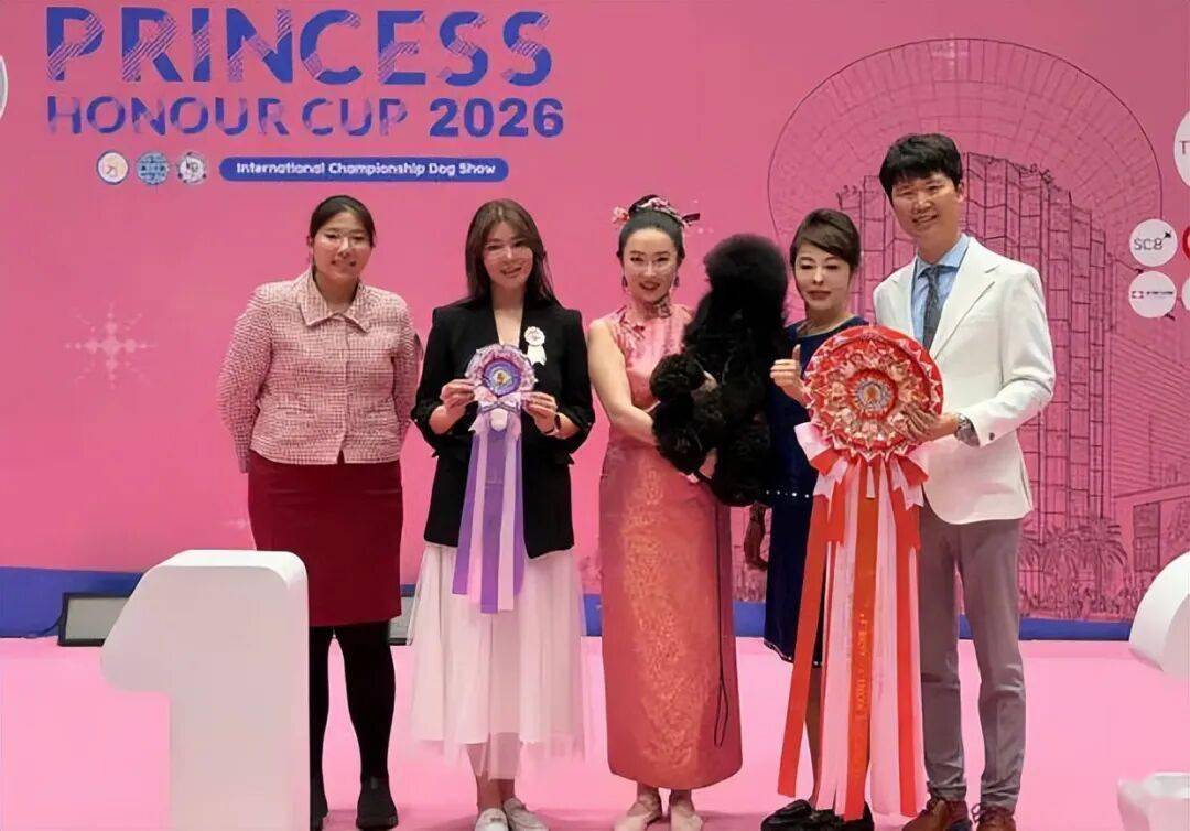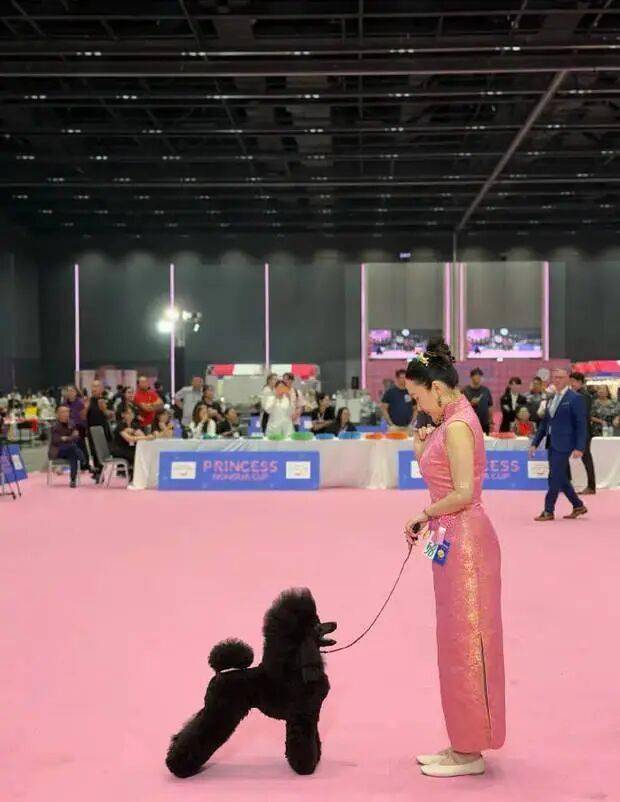5日晚,杜江晒出妻子带着宠物参加泰国“公主杯”犬展比赛,并透露爱犬“霍蜜蜡”(中型贵宾)获得了puppy组全场总冠军第一名。