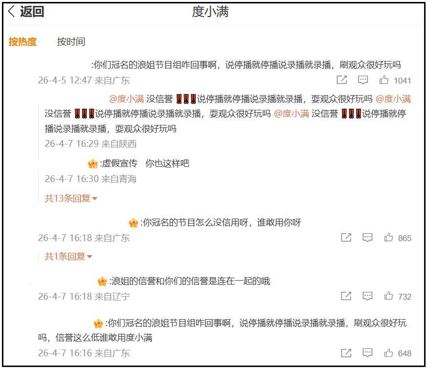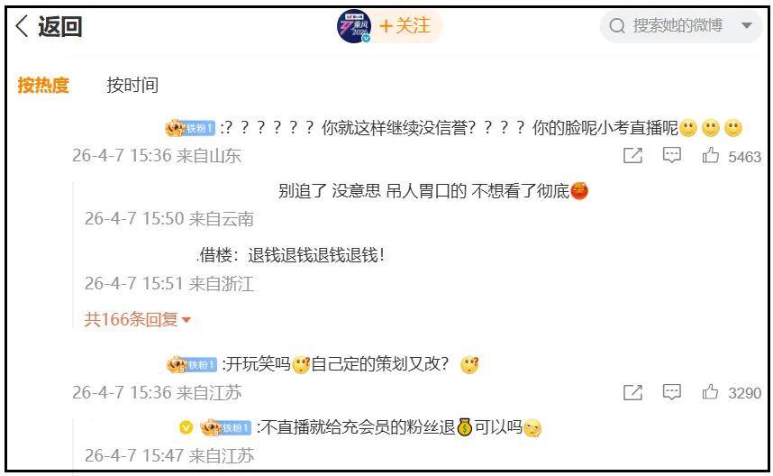 目前已经有网友狂喊退钱了,放话要退掉芒果平台会员,以此抗议节目组出尔反尔,把直播改成了录播,连同赞助商评论区都遭殃。