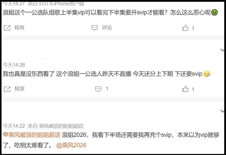 毕竟不少网友都是为了看《乘风2026》直播才购买了芒果VIP会员,如今直播没了,只能看录播,选择维权也是无奈之举。
