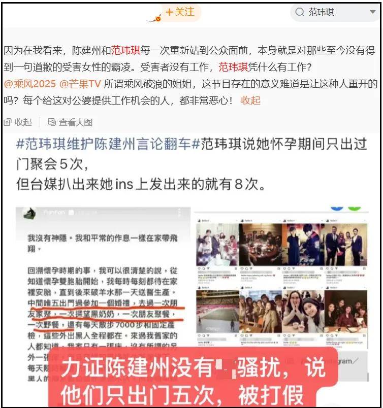 至于范玮琪,她的争议可太多了,早在节目播出之前,就有网友质疑范玮琪不该上女性节目,因为她的老公陈建州涉嫌骚扰女性,范玮琪还和陈建州沆瀣一气,试图用起诉威胁受害者闭嘴。