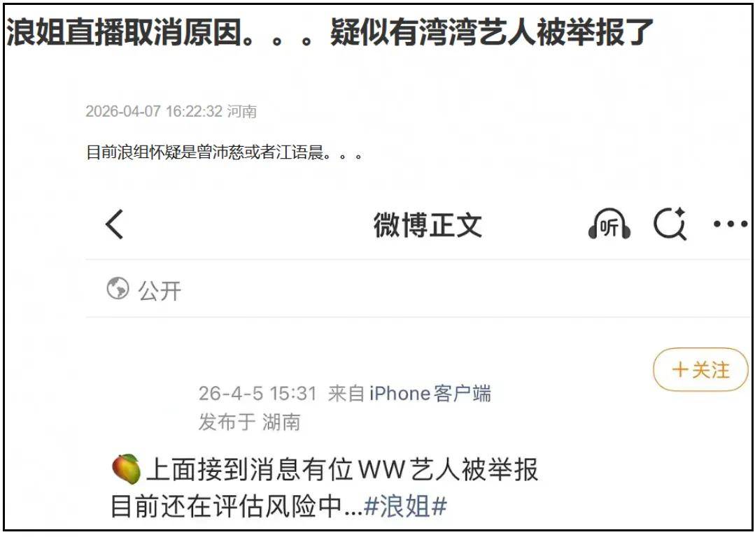 与此同时,还有IP定位湖南的网友出面爆料,表示节目组接到通知,某位姐姐被举报了,他们需要评估风险,只能取消直播。