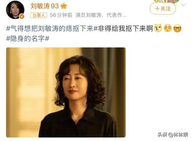 当初《隐身的名字》播出时,刘敏涛饰演的角色激起了网友强烈的情绪,气得想把刘敏涛的痣抠下来的话题一度冲上热搜。刘敏涛幽默回应:非得给我抠下来啊。这份轻松的互动,让网友们对她倍感亲切,也为她的人气增添了几分可爱。