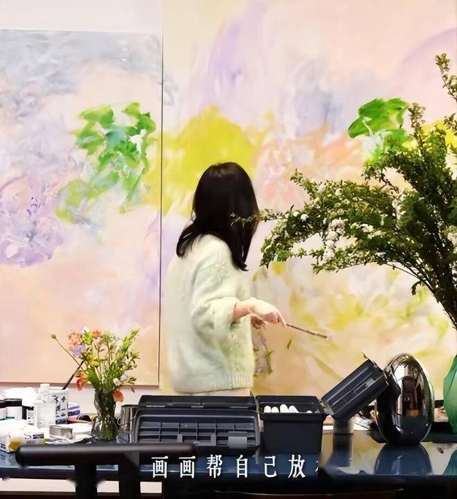忙碌完插花之后,多才多艺的田朴珺又着手在别墅内静心作画,先调好颜料盘、再一笔一笔地勾勒出诗意油画,尽显娴静雅致,无愧“才女”称号,难怪能征服商业大佬王石。