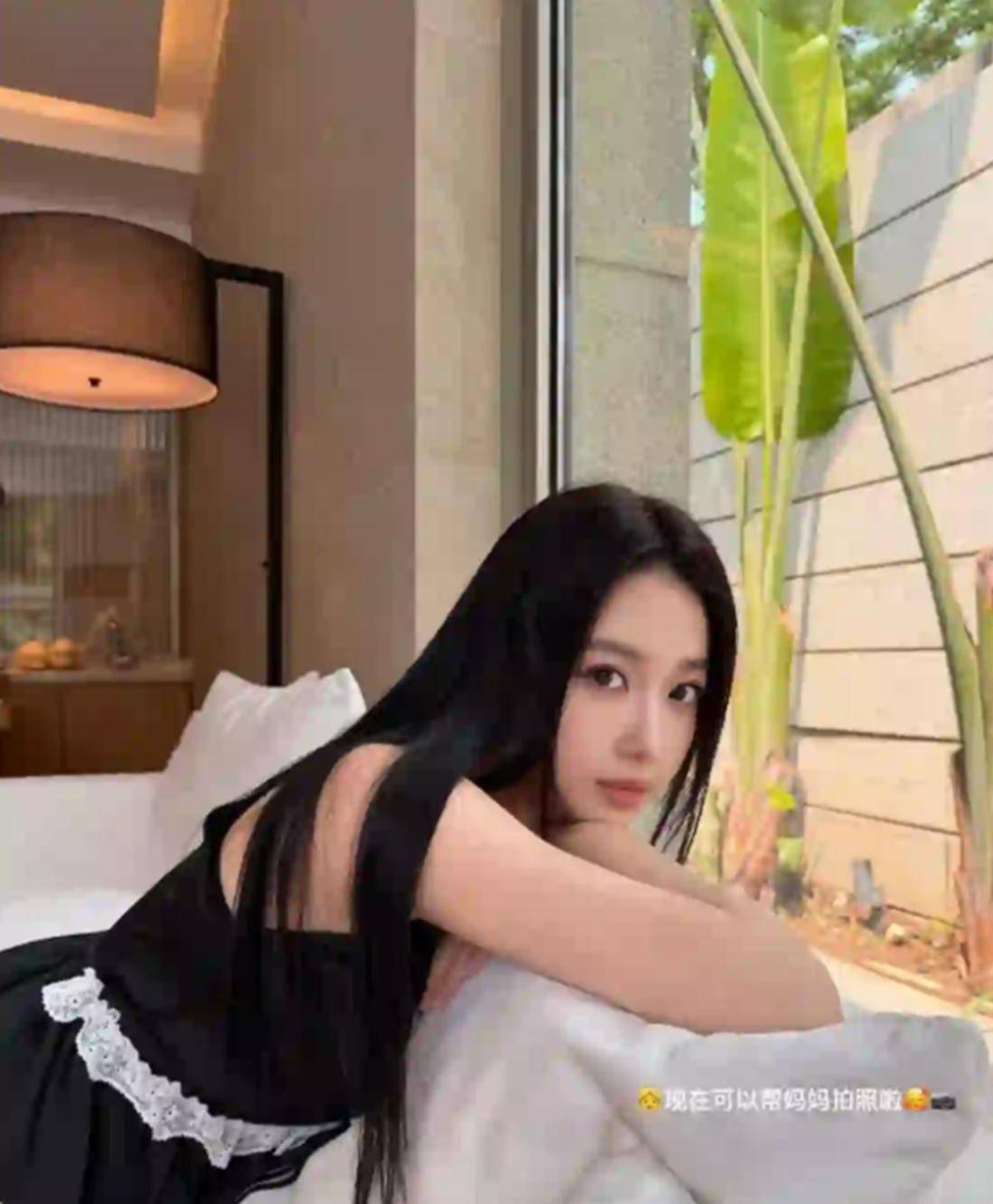 宣云也分享了一张由女儿为她拍摄的照片。 在这张照片里,宣云侧身躺在一张铺着白色床品的床上,双臂交叠枕在头下。 她穿着一件带有白色蕾丝花边的黑色无袖连衣裙,黑色的长直发柔顺地散落在肩膀和背部。 照片的构图和光线得到了不少网友的称赞,被认为拍摄技术不错。