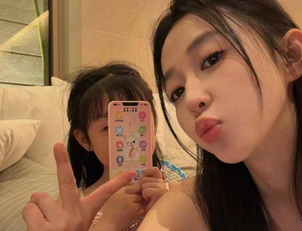在一张三人合影中,宣云手持手机对着镜头自拍。 她嘟着嘴,做出俏皮的表情,一头黑色的长发自然地披在肩上。 她的女儿紧挨在她身边,身上穿着一件粉色的纱裙。 小女孩的脸大部分被妈妈的手机挡住,但从露出的下半张脸和眉眼轮廓来看,许多网友认为她长得更像爸爸潘玮柏。 潘玮柏本人没有出现在画面中,只有一只手搭在妻女身旁。