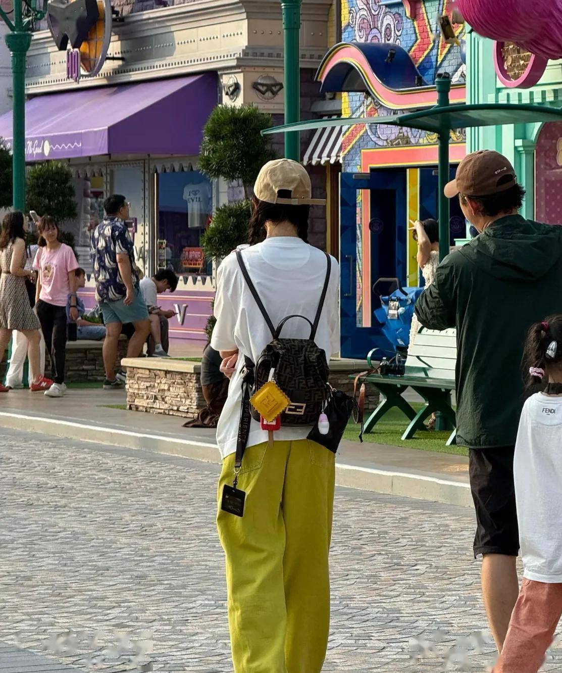 新加坡环球影城,一位游客拍下了这样一组画面。 唐嫣扎着双麻花辫,头戴米色棒球帽,白色T恤配一条明黄色阔腿裤。 43岁的她站在人群里,皮肤紧致,身材纤细,看起来像刚毕业的大学生。