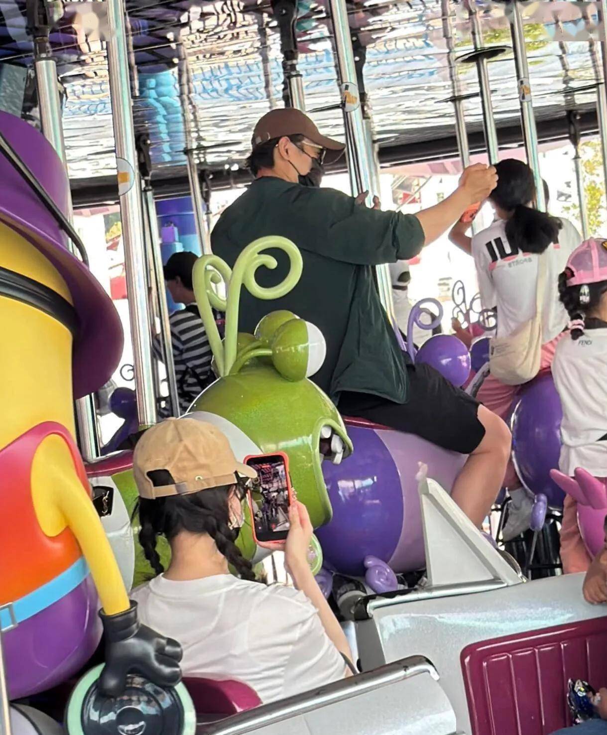 旋转木马前,罗晋带着女儿坐了上去。 唐嫣没有跟着一起,她站在围栏外,举起手机对着父女俩。 镜头里,罗晋戴着口罩和墨镜,女儿坐在他身旁的木马上。 唐嫣按下快门,记录下这个瞬间。
