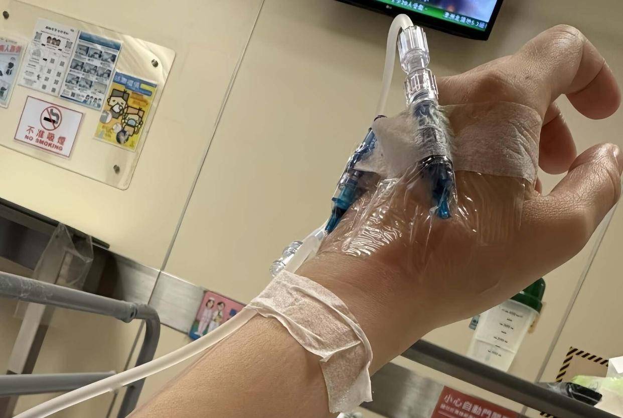 2026年4月5日,复活节假期,一张没有露脸、只有插满三根输液针管手臂的病床照。 郑艳丽在社交平台写道:“终于捱唔住入咗几日医院啦! 呢几日仲有假期冇得点样睇医生,一只手上