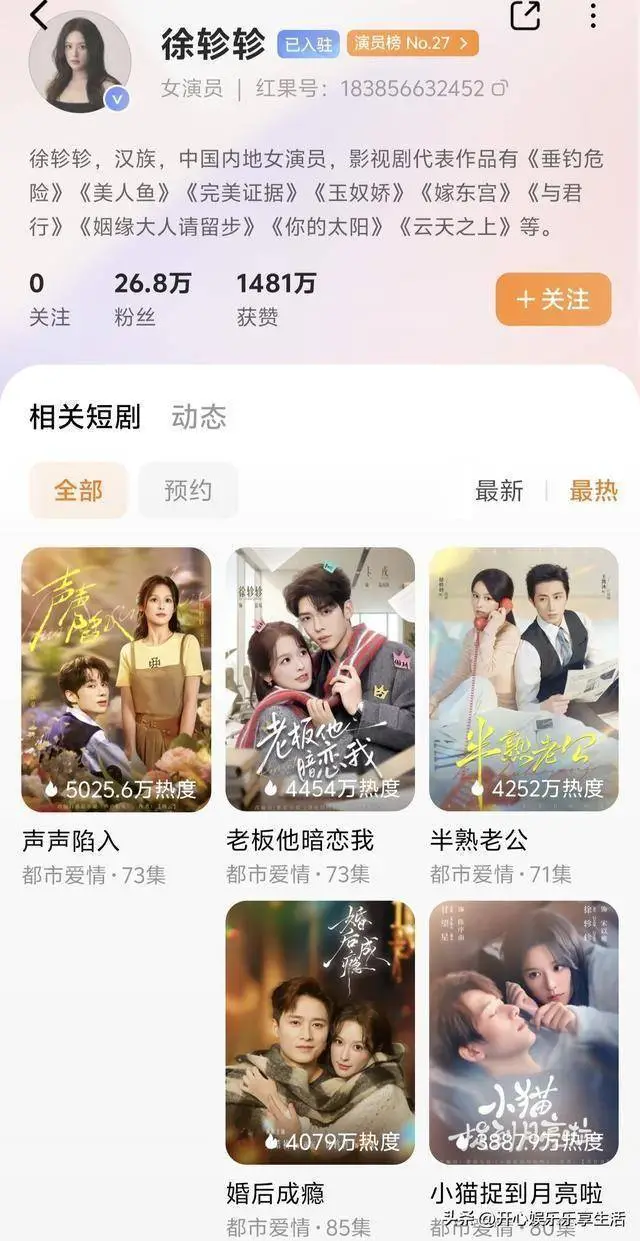 徐轸轸走入观众视野里和开启短剧之旅,就不得不提与王凯沐合作的那部《半熟老公》。这部收藏量达到了395万,观众反响十分热烈。这部剧是分账式短剧,王凯沐预计分账150万,徐轸轸预计分账100万。可她本人却未收到前公司任何片酬,在长文中,她表示:果是每月正常分到前司的,还是一起共事的演员之制片平台方朋友告诉我我才知道,前司从未主动给我看过任何收入清单。