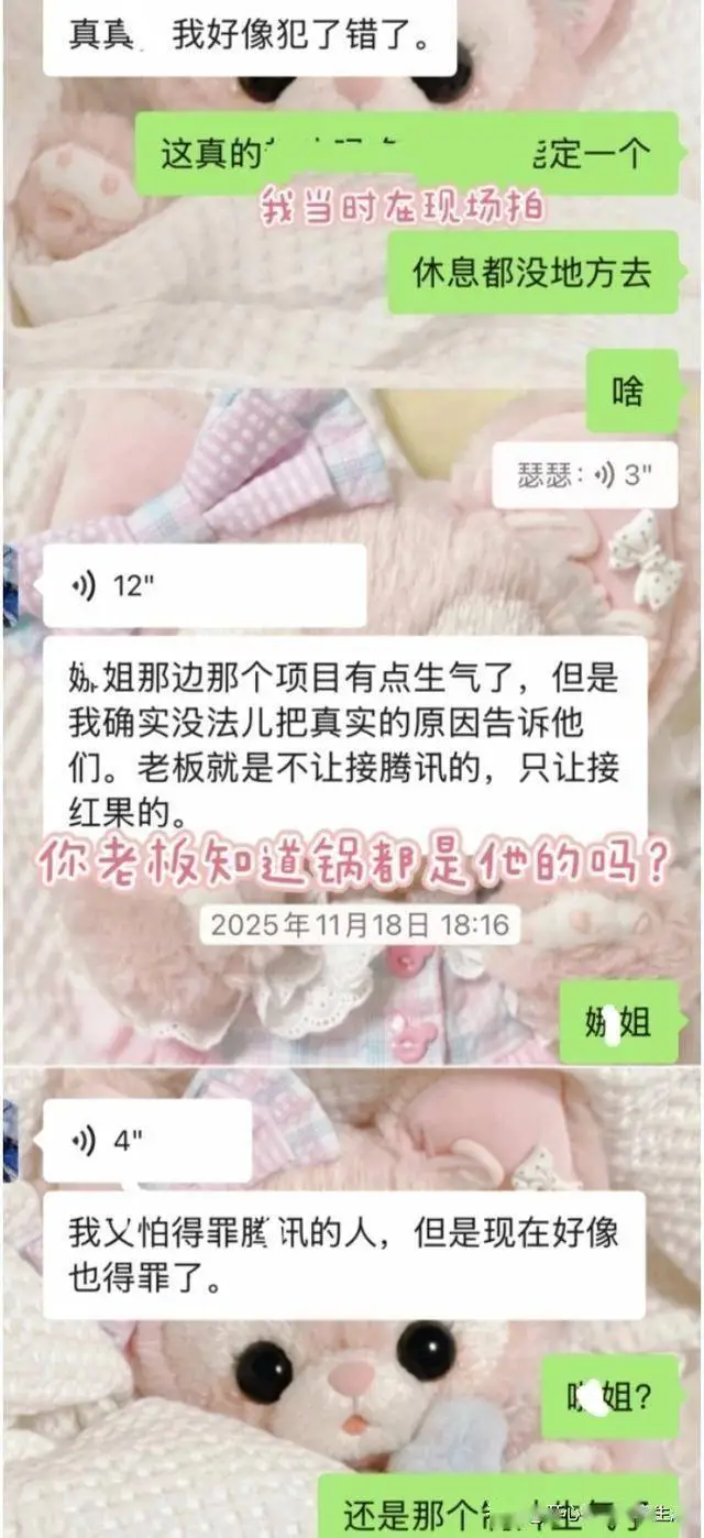 作为经纪人,专业能力也不行。每次做错事只会说“我很慌,怎么办?”还甩锅老板,徐轸轸多次为 她收拾烂摊子、得罪人。朋友心疼帮忙对接后续经纪工作,甚至被公司克扣数月薪资绩效我自行补贴,前经纪人瑟瑟却过来说徐轸轸是忘恩负义、想过河拆桥的白眼狼。