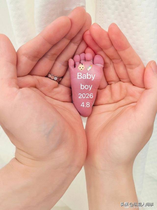 照片里宝宝的小脚丫标注得明明白白,“baby boy 2026.4.8”,妥妥的金牛座宝宝。