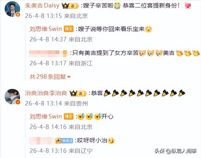 刘思维官宣当爸,最激动的莫过于粉丝们,评论区直接被 “恭喜”“祝福” 刷屏。