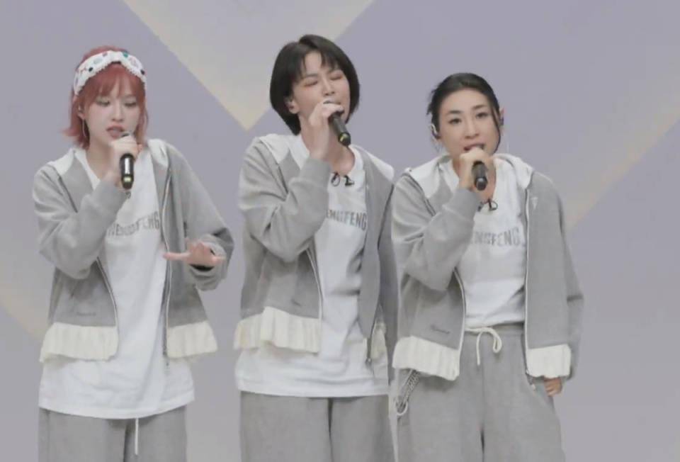阚清子团率先登场,她们带来的歌曲是《咏春》,3位姐姐都没能记住歌词,演唱缺少自信,舞台上眼神也是飘忽不定的,完全没有唱出歌曲的气势,三个人都是大白嗓,全程都像是在读歌词,听起来格外别扭。