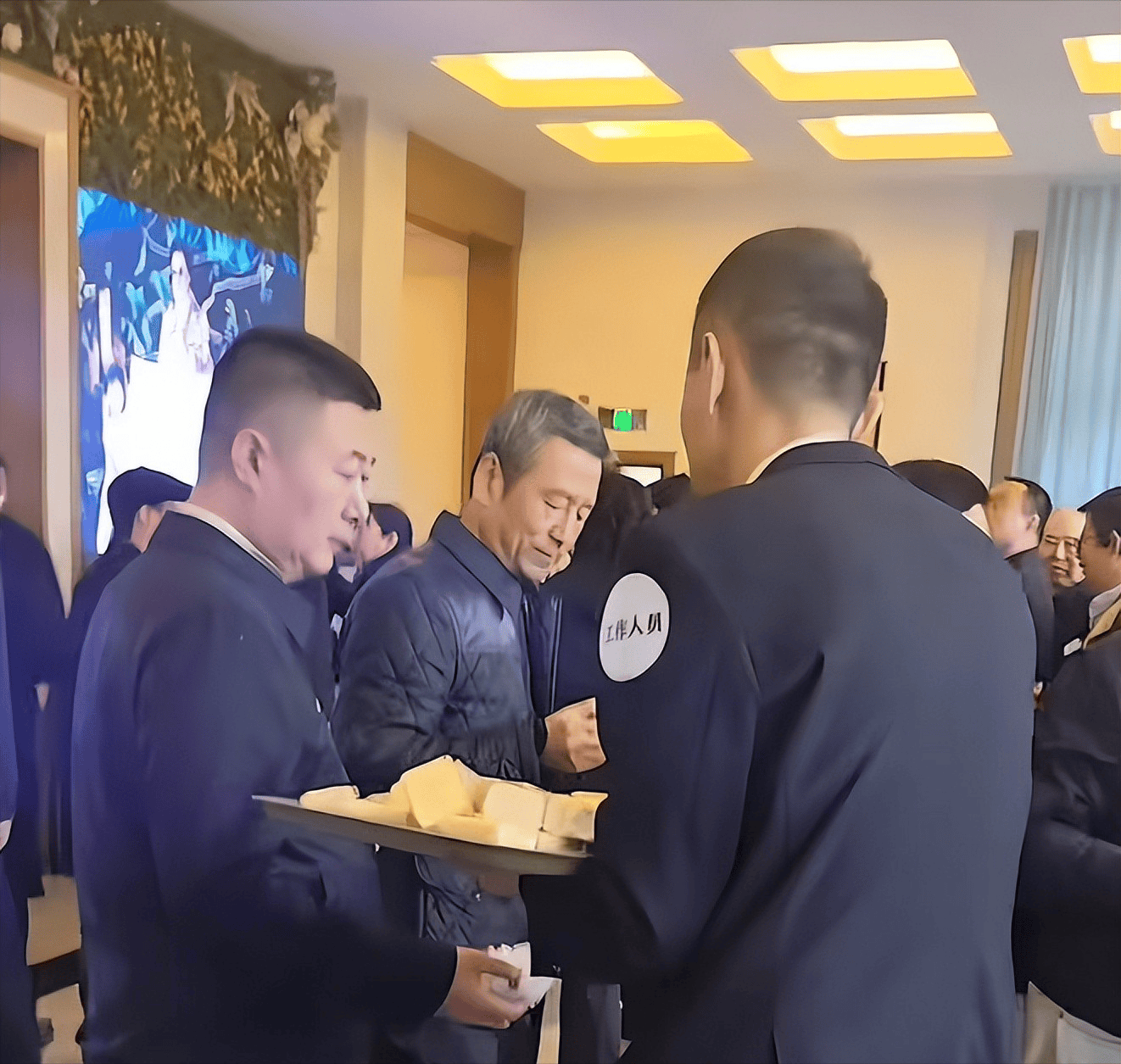 一头白发,深色外套,领白花的时候没有多余表情。有人想凑上去寒暄,他也就点点头,几句话结束,不接受围堵,不抢话筒,转身就走。