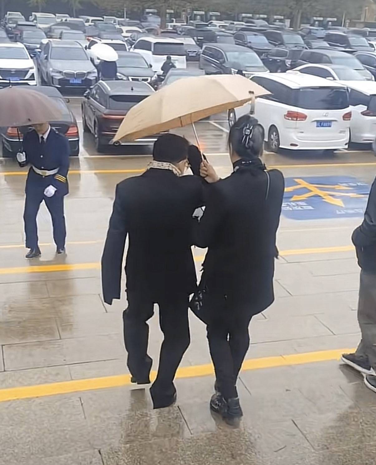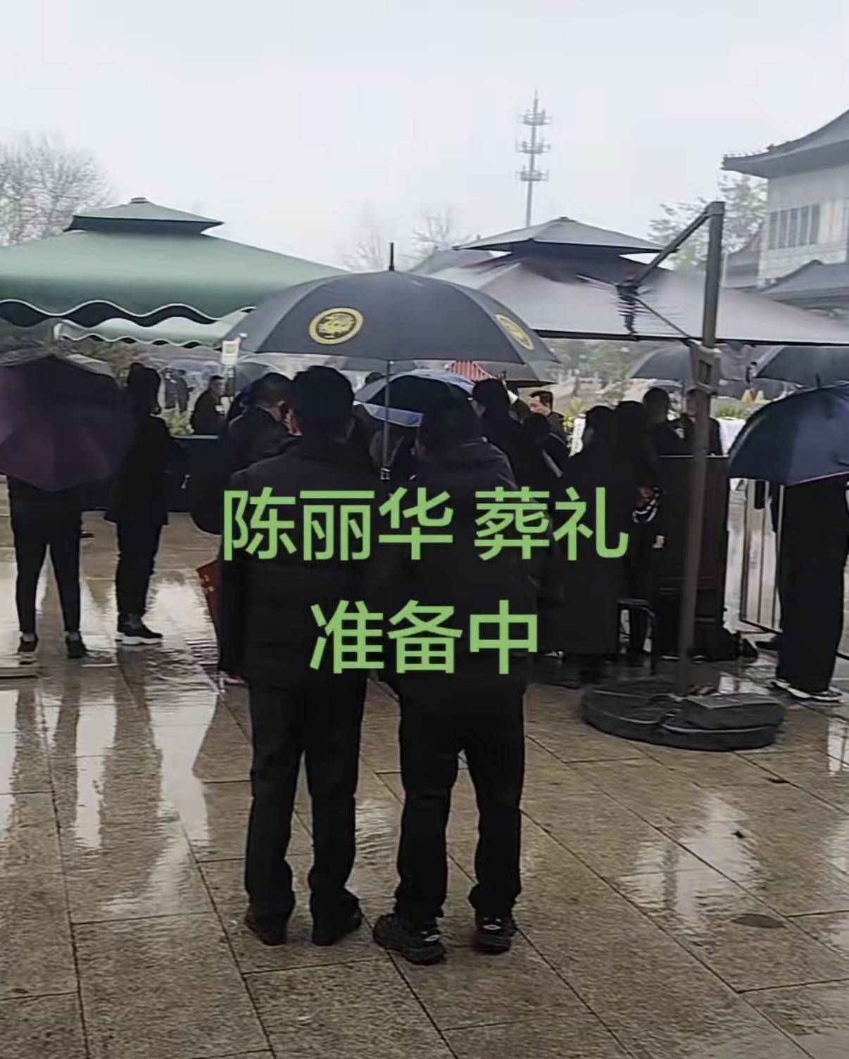 送别的众人都穿着一身黑衣,撑着黑色雨伞,神情悲伤的走进礼堂。在东礼堂道别的都是陈丽华女士的亲友,群众道别是在紫檀博物馆。