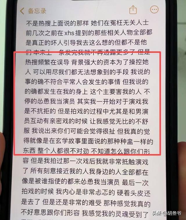 她还揭露操控者长期怂恿她演戏,尤其抵触亲密戏,每次拍这类戏份都像被种蛊一样浑身不适,这种精神压迫让她喘不过气。