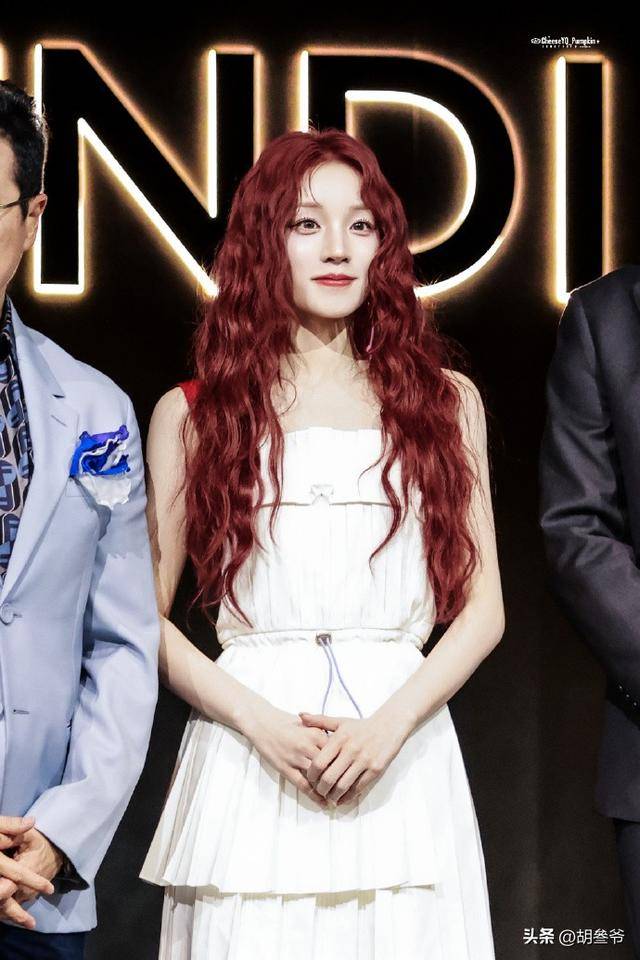 作为Fendi品牌形象大使,宋雨琦这次以酒红卷发搭配白色露背褶皱裙造型亮相。