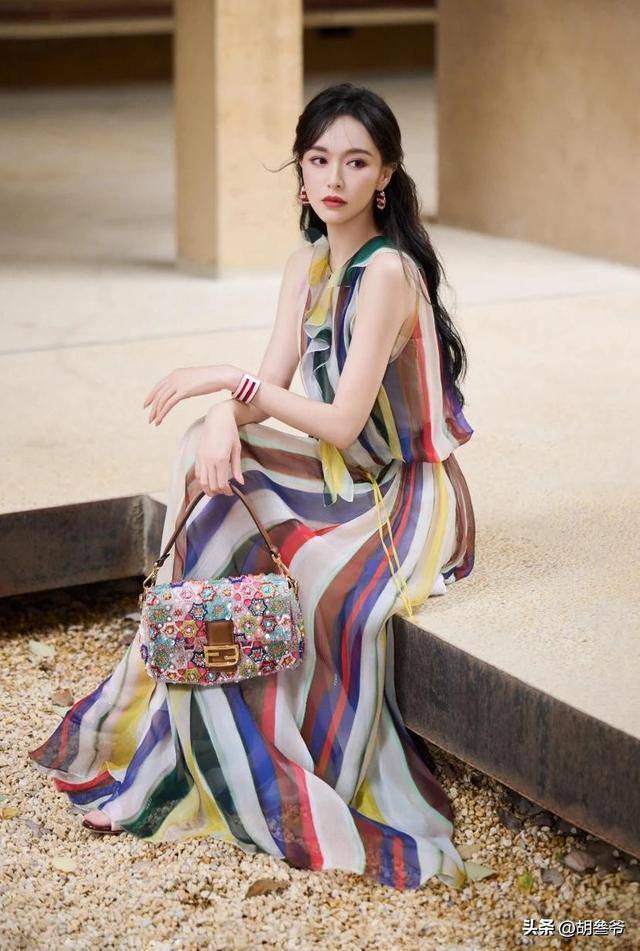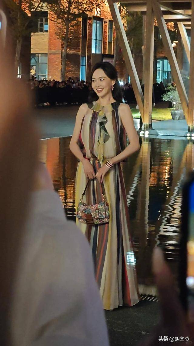 彩色条纹长裙被她穿出了灵动与优雅,和景德镇的瓷韵完美融合,不愧是深耕时尚圈多年的85花顶流。