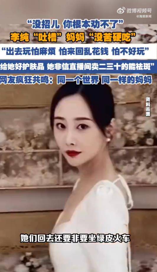 近日,演员李纯在综艺节目《妻子的浪漫旅行》中的一番分享,引发了广泛共鸣。她坦言对母亲的生活态度感到“既心疼又无奈”,并吐槽妈妈是典型的“没苦硬吃&rdquo