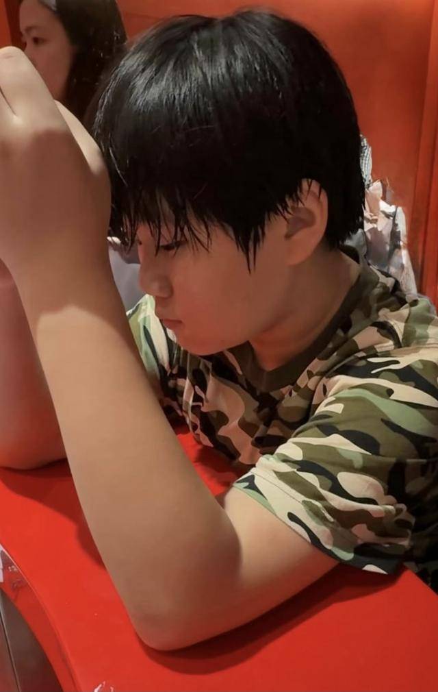 她的儿子则是穿着迷彩上衣,五官看起来和吕慧仪有相似的地方,但是那双小眼睛就真的让人联想到其爸爸。