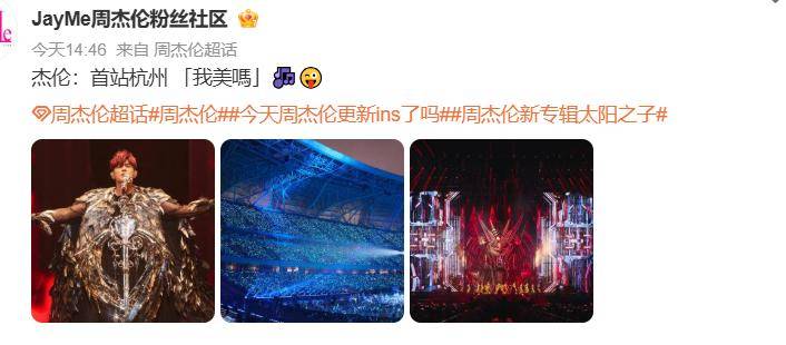 周杰伦杭州演唱会首场结束后,在社交平台上更新了3张照片,臭美了一把。