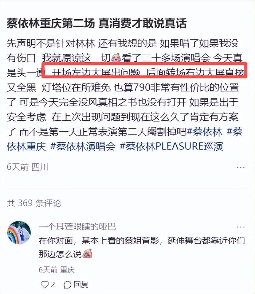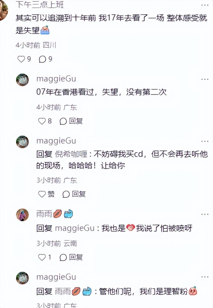 有不少歌迷出来现身说法,称他这几年的现场或多或少都有问题,舞美设计都是一个样。