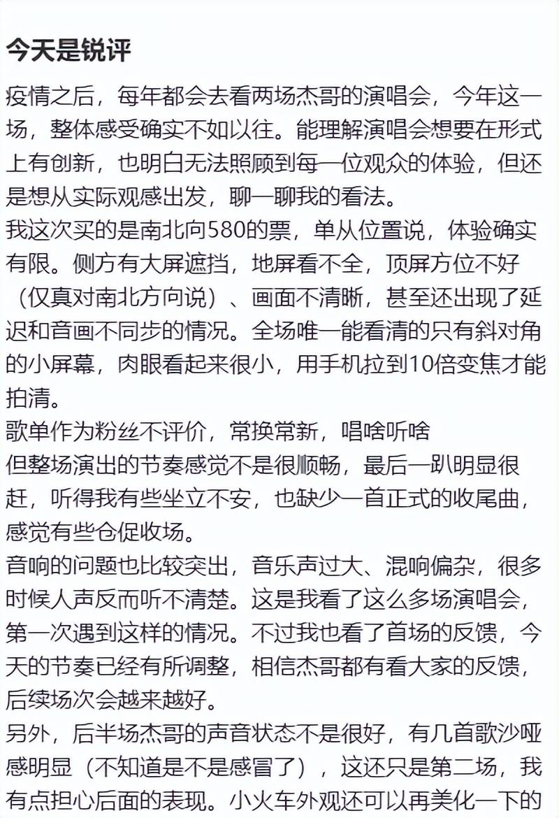 还有网友吐槽他一点不体恤粉丝,看台设计极不合理,一部分观众只能看到小屏,根本看不到舞美的细节。