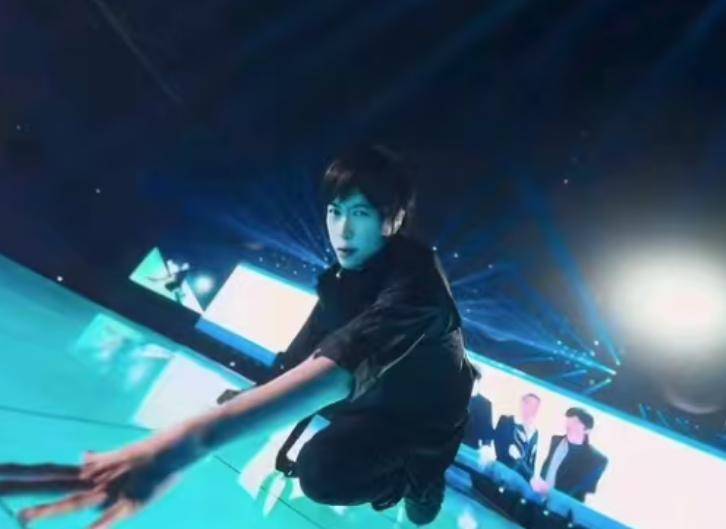 他最近在演唱会上当众跪地,表演了一段滑动爬行。