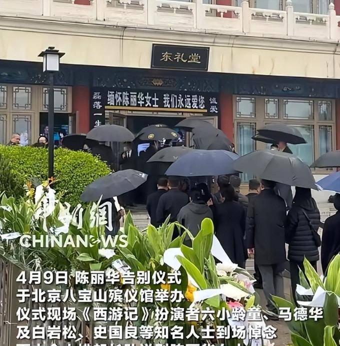 在上午的告别仪式上,86版《西游记》的孙悟空角色由六小龄童扮演,猪八戒角色由马德华出演,此外,知名主持人白岩松、朱军和画家史国良等都为这场悼念活动献上了他们的胸别白花。