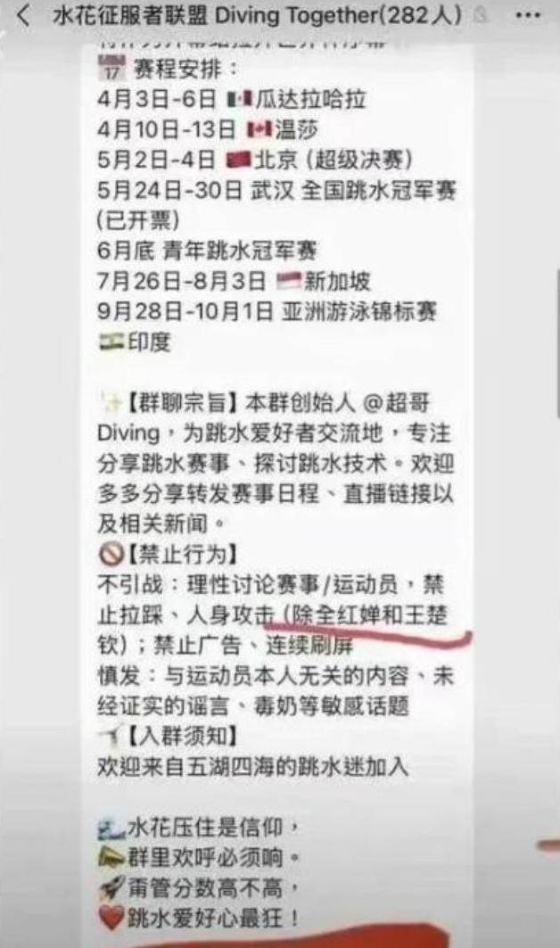 到2025年11月15日为止,群主发布了新的群规,并以更加刺耳的语气宣布:“从今天开始,本群成员可以毫无顾忌地对全红婵和王楚钦进行严厉的斥责”,