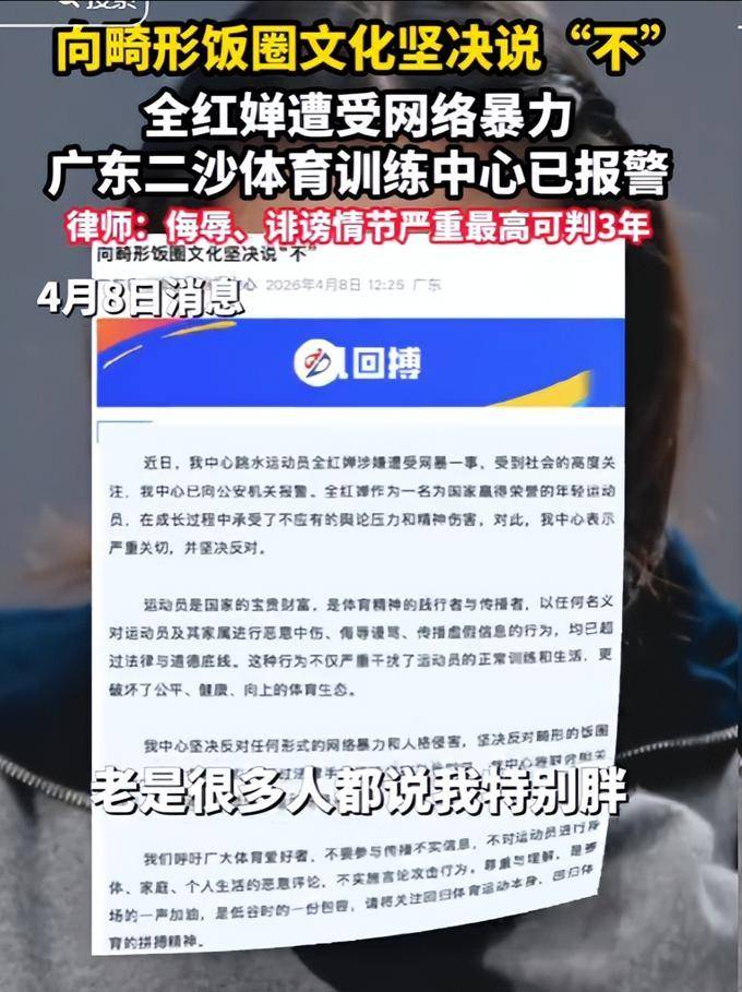 天理昭昭,报应不爽!长达三年的网络抹黑,终于迎来了被清算的一天!谁能想到,在赛场上用“水花消失术”惊艳世界、为国争光的天才少女全红婵,在光环背后,竟承受着如此令人