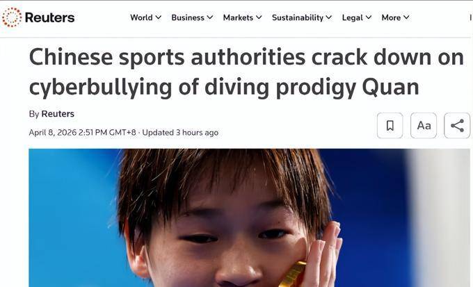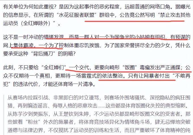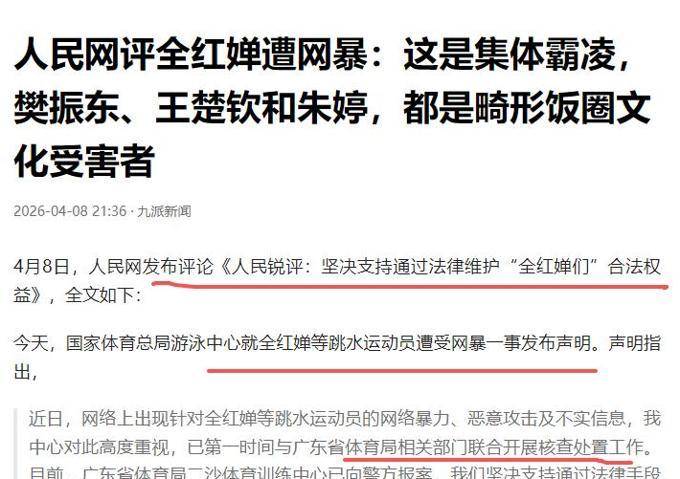 全红婵用自己的勇敢,推动了体育圈生态的净化。我们绝不能让流汗流血的英雄流泪,网络空间不是法外之地,任何触碰法律底线、伤害为国争光健儿的施暴者,终将为自己的行为付出应有的代价!