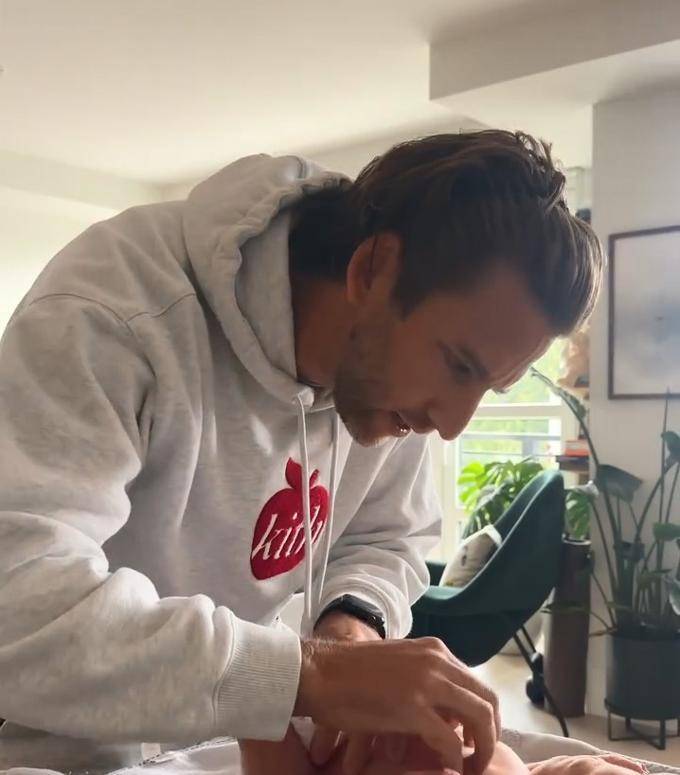 谢婷婷的男朋友对待他的小儿子表现得非常温柔,当他外出照顾孩子时,就像一个经验丰富的父亲,而他对孩子的关心和照顾也是无微不至的。他总是背着“妈妈包”,甚至在为孩子更换尿布时也显得非常有风度。