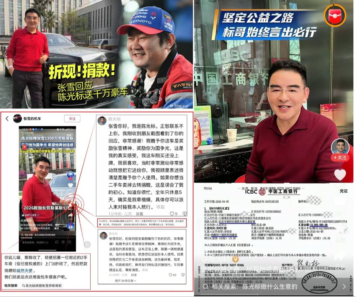陈光标没有纠结“赠车再变卖”的繁琐流程,而是直接将豪车变现,以最快的速度完成了捐赠。
